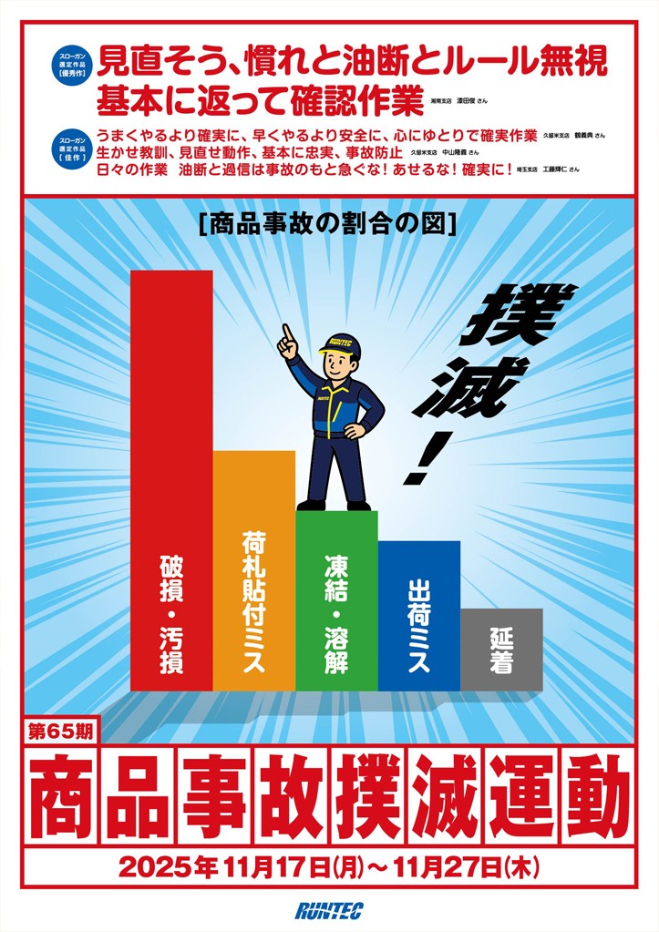 期間中は本運動を通じて重点項目の実施と基本動作の徹底を図り、商品事故の撲滅に